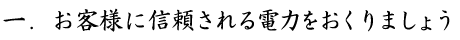 - 安全確保を最優先に,お客さまに信頼され満足していただける良質で低廉な電気を安定的に提供していきます。