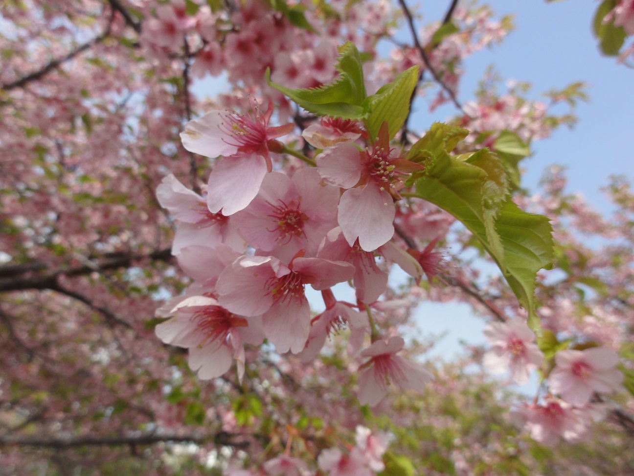 一足早い春を感じさせてくれた河津桜は、花びらが散り葉が目立ってきました。