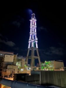 「救急の日」及び「救急医療週間」の普及啓発を行う勿来消防署に協力し、救急車をイメージしたカラー(赤色と白色1段目の赤色はパトランプをイメージし回転)にライトアップいたします。