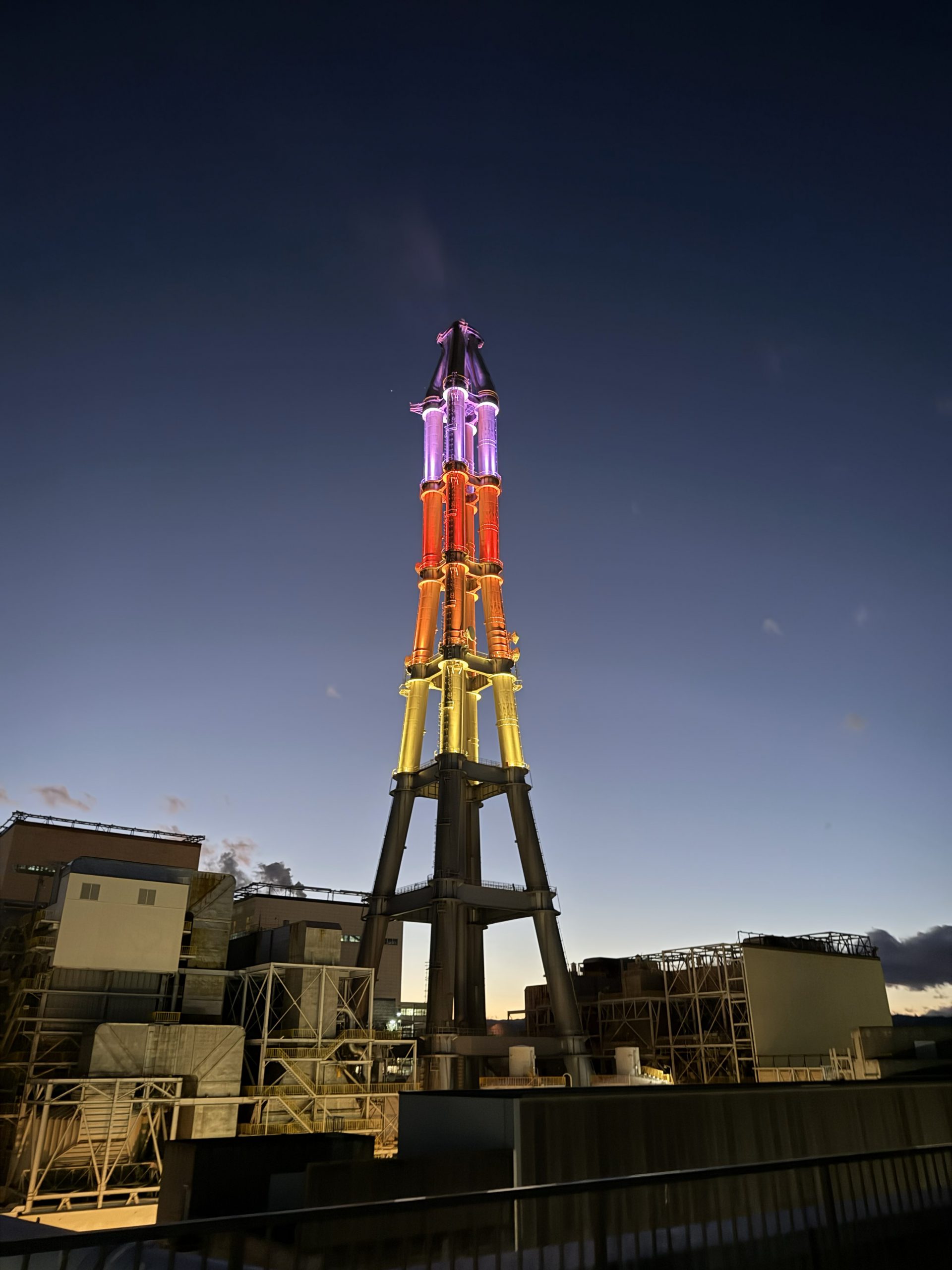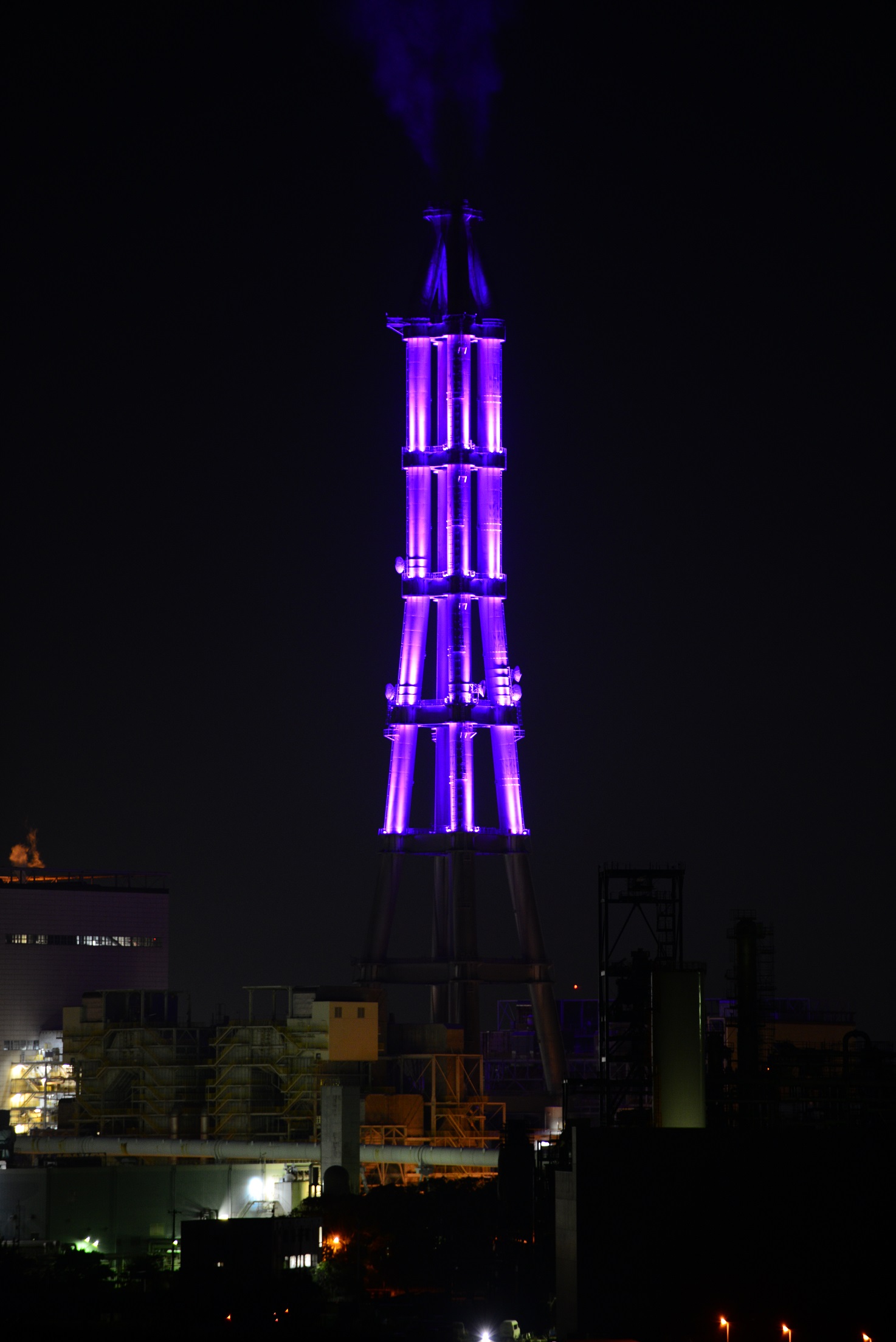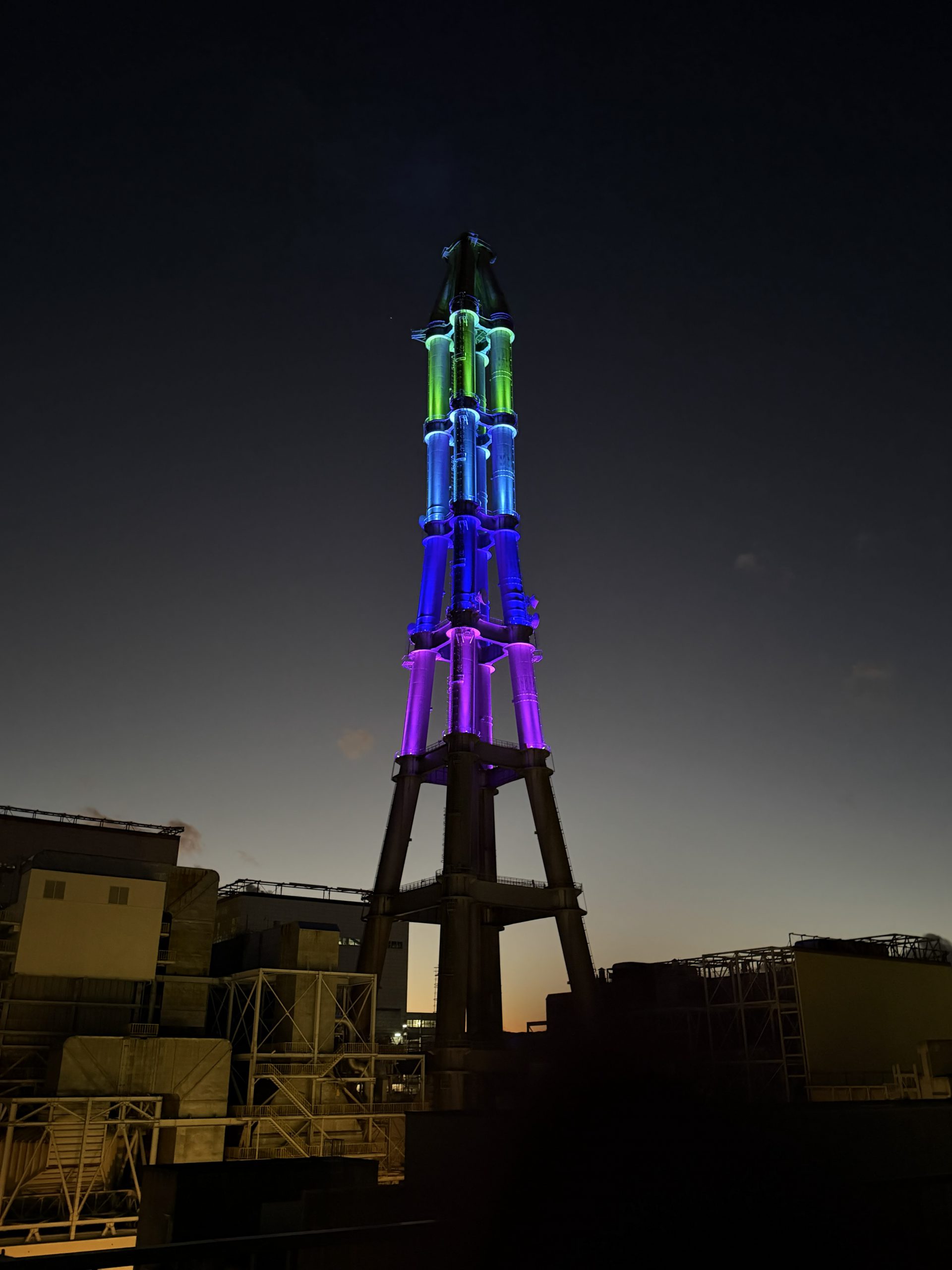 2018年12月21日より、8・9号機集合煙突のライトアップを実施しております。このライトアップの愛称『勿来ゆめライト』は、この『勿来』地区でライトアップをご覧になった皆さんに夢をもってもらいたいという意味の『ゆめ』、さらに発電所の電気で街も皆さんの心も明るくしたいという願いを込めた『ライト』を組み合わせて、『勿来ゆめライト』としました。